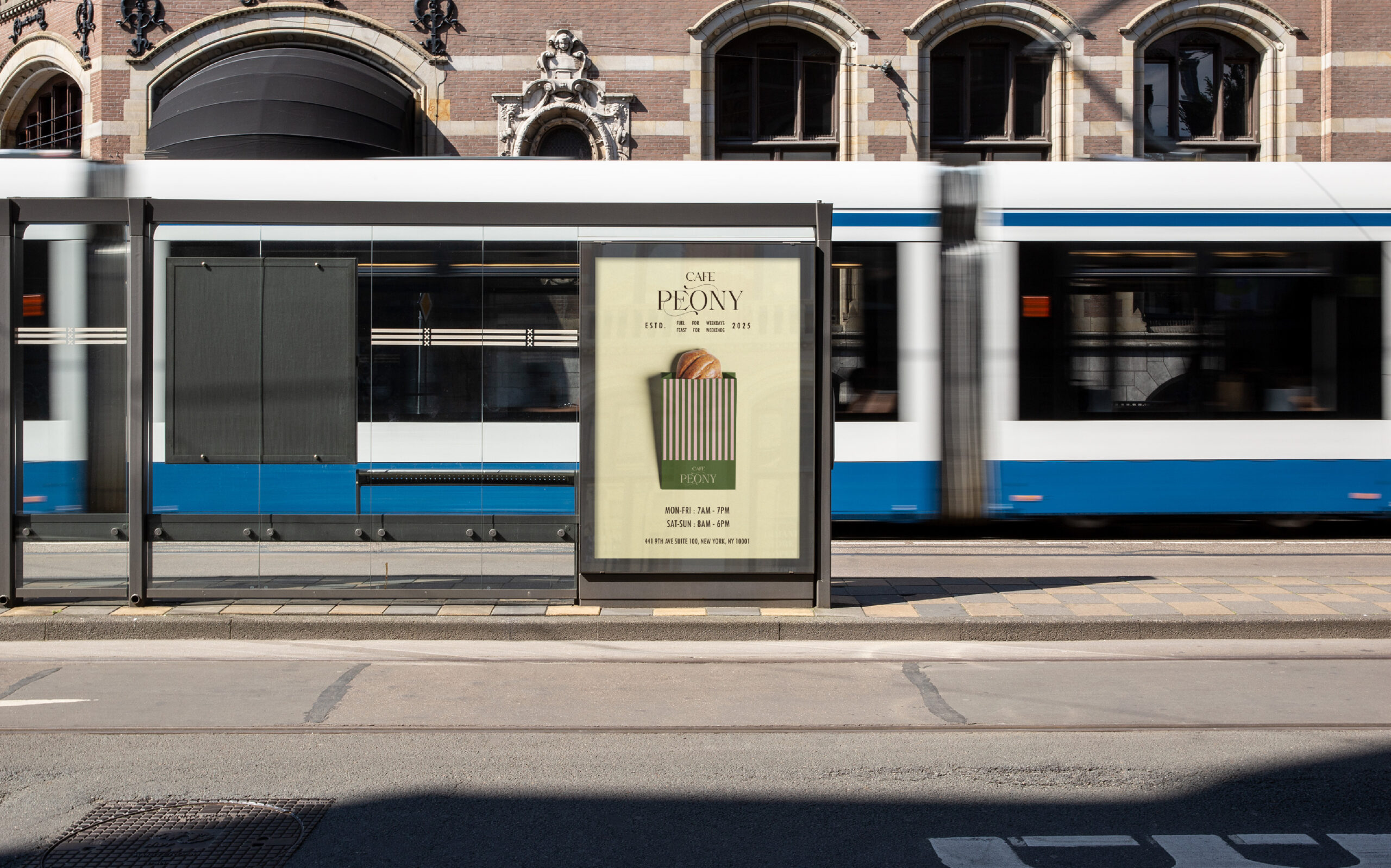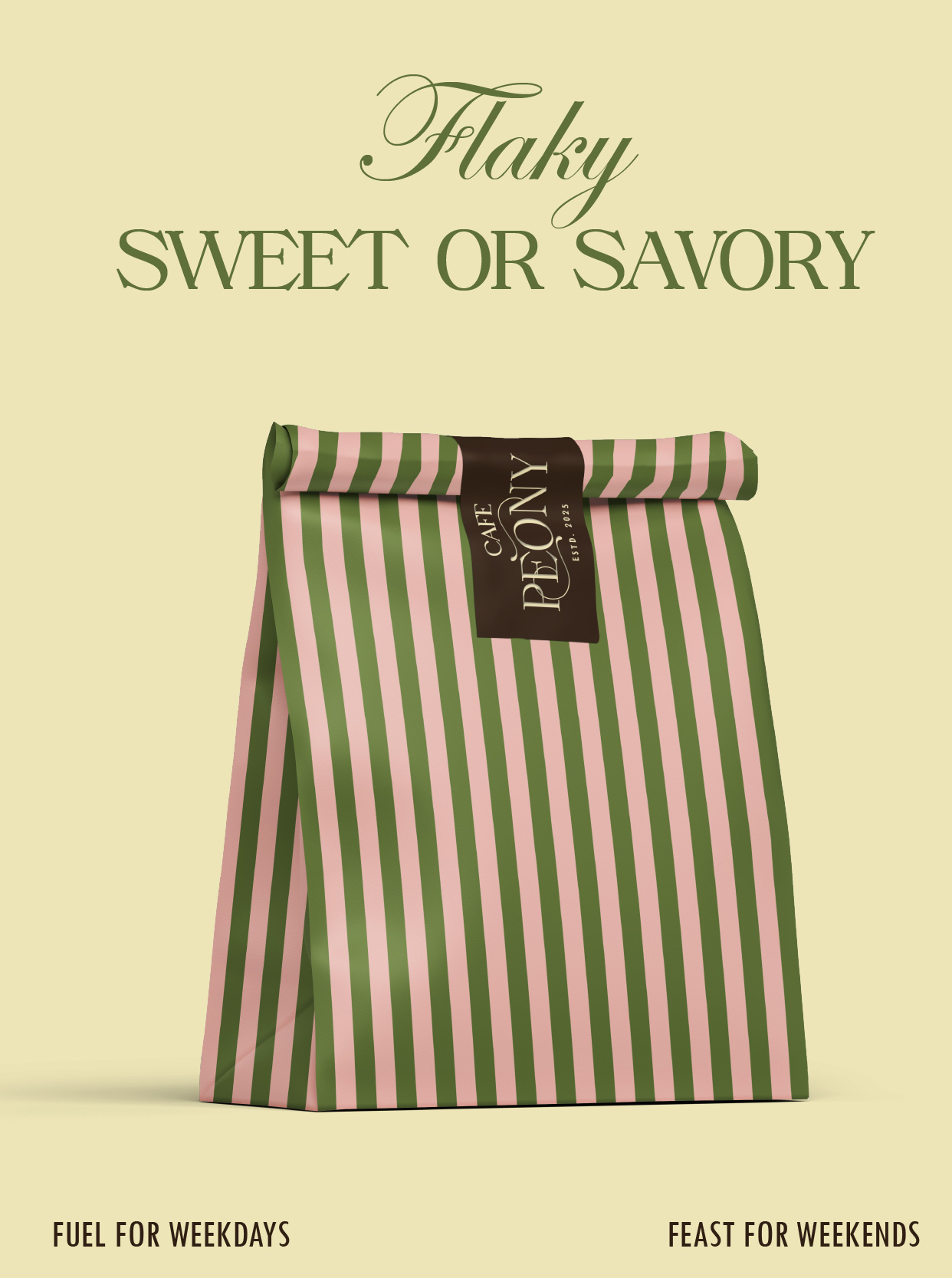 A vintage charm meets modern indulgence. Cafe Peony’s identity blends muted pastels, bold typography, and timeless stripes — creating a brand language that feels premium, curated, and rooted in slow living. From flaky croissants to artisanal coffee, every detail is designed to bloom with quiet elegance.